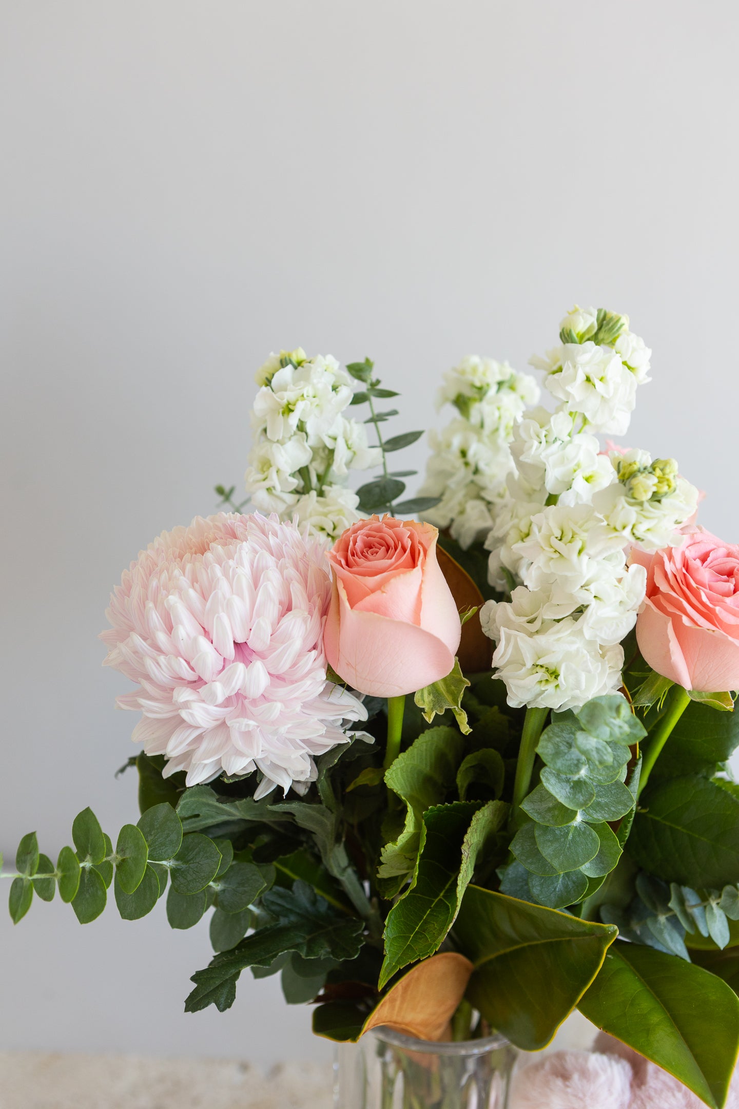 Celebrate the arrival or pending arrival of a new baby girl with our carefully curated flowers and accompanying gifts for parents and bubba.