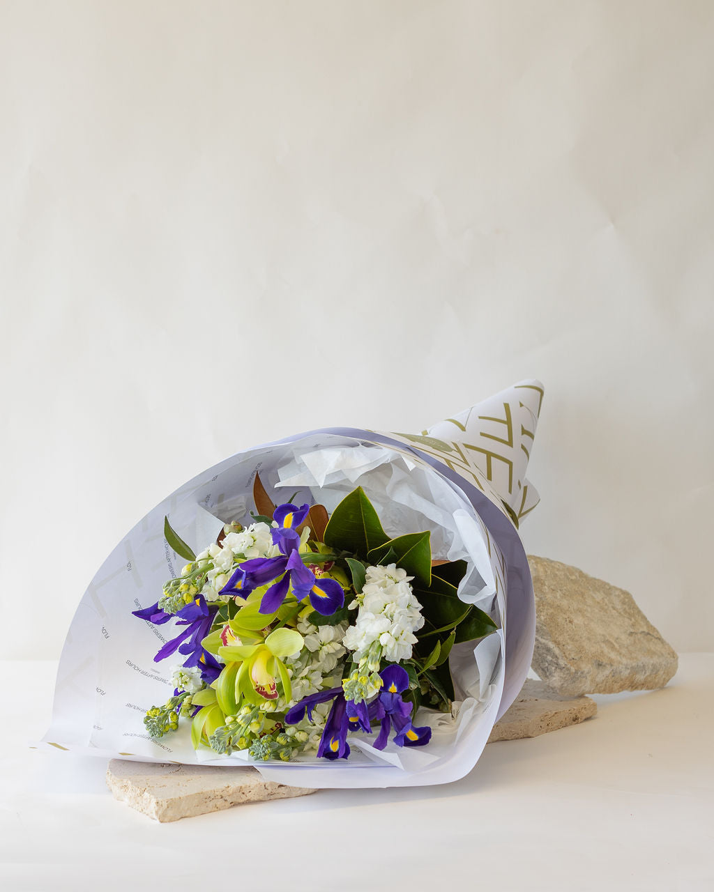 Take a walk through a Windergarden with our favourite Winter blooms brought together into a beautiful seasonal bouquet. Stock, Iris, and Cymbidum orchids with fresh foliage. Perfect for brightening up any space during the depths of winter.